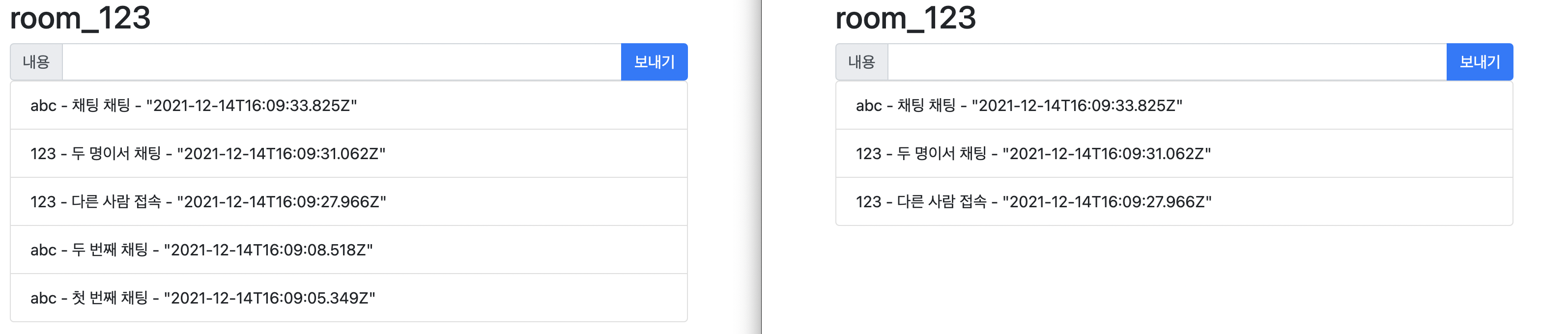 현재는 채팅 메시지 타입이 'COMMENT'인 경우만 화면에 그려주고 있는데, 'ENTER'일 때도 그려주는 등 다양한 활용이 가능하다.